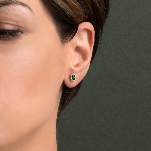 Οβάλ Σκουλαρίκια με Πράσινη Πέτρα – Χρυσό 14Κ