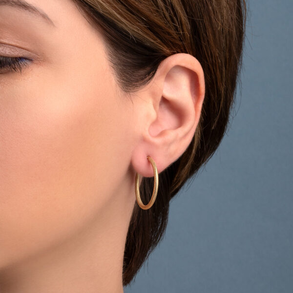 Σκουλαρίκια Κρίκοι με Σκαλιστή Επιφάνεια- Επιχρυσωμένο Ασήμι 925