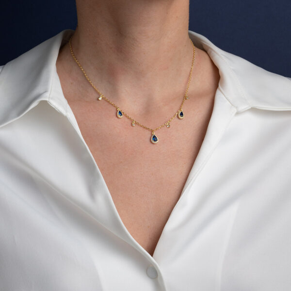 Κολιέ με Κρεμαστά Μπλε Ζιργκόν – Επιχρυσωμένο Ασήμι 925