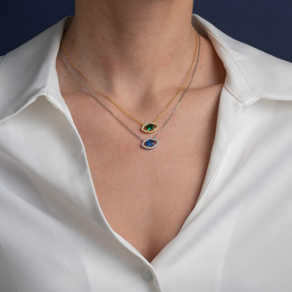 Κολιέ με Ματάκι και Ζιργκόν – Επιχρυσωμένο Ασήμι 925