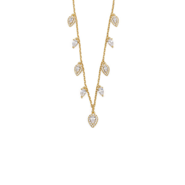 Κολιέ με Κρεμαστά Λευκά Ζιργκόν – Επιχρυσωμένο Ασήμι 925