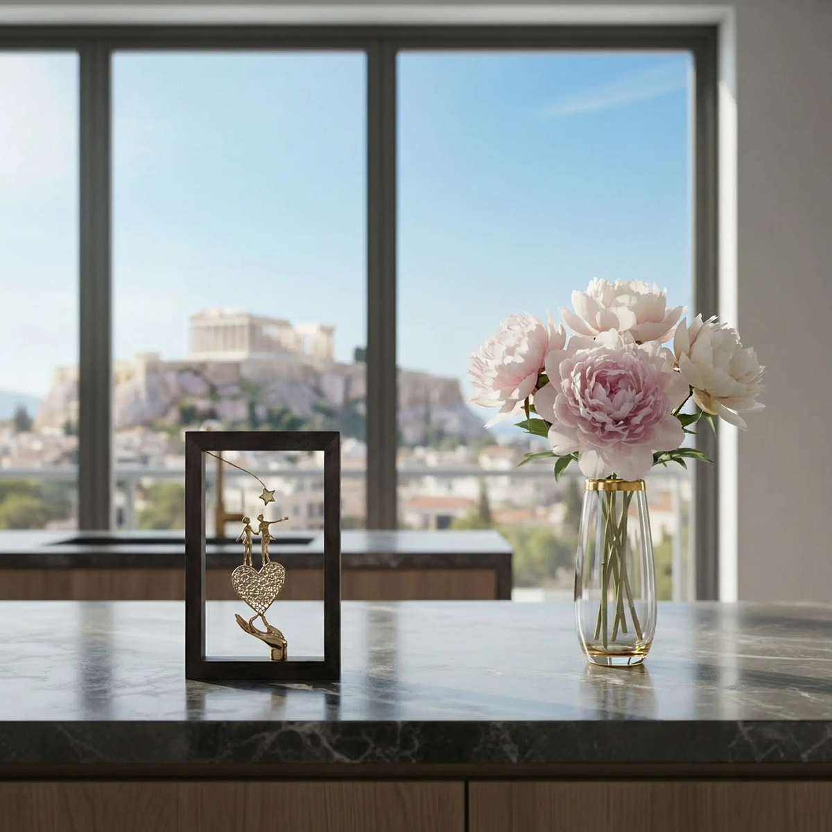 Ένα Ζευγάρι και μια Καρδιά – Μπρούτζινες φιγούρες σε ξύλινο πλαίσιο