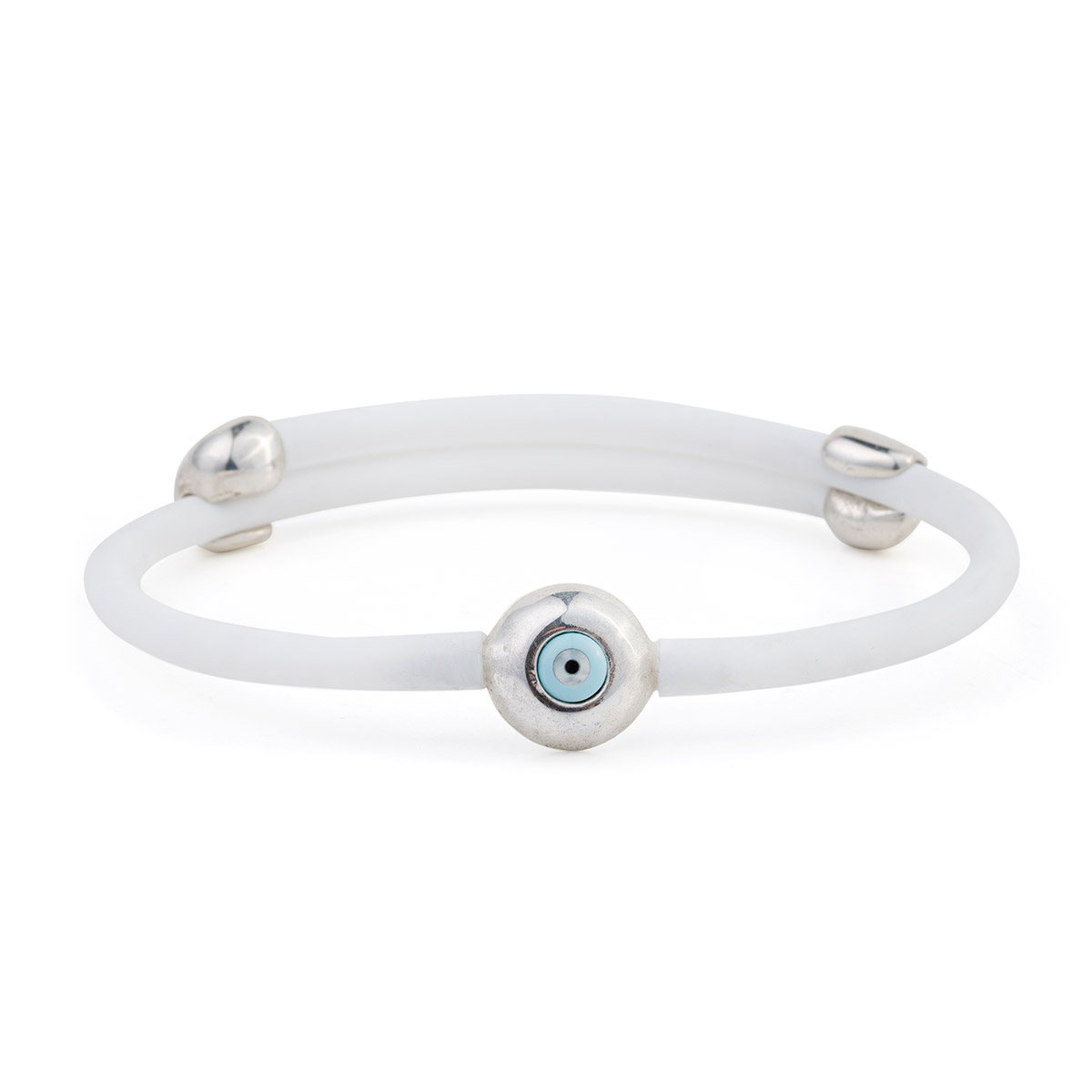 Λευκό βραχιόλι Καουτσούκ με Στρογγυλό Μάτι – Ασήμι 925