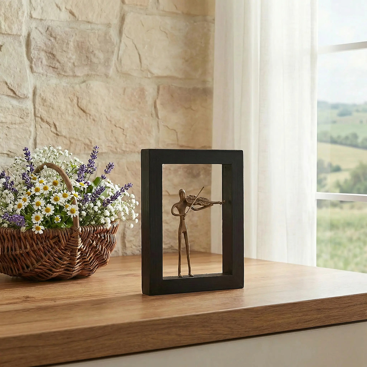 Παίζοντας Βιολί – Μπρούντζινη φιγούρα σε ξύλινο πλαίσιο