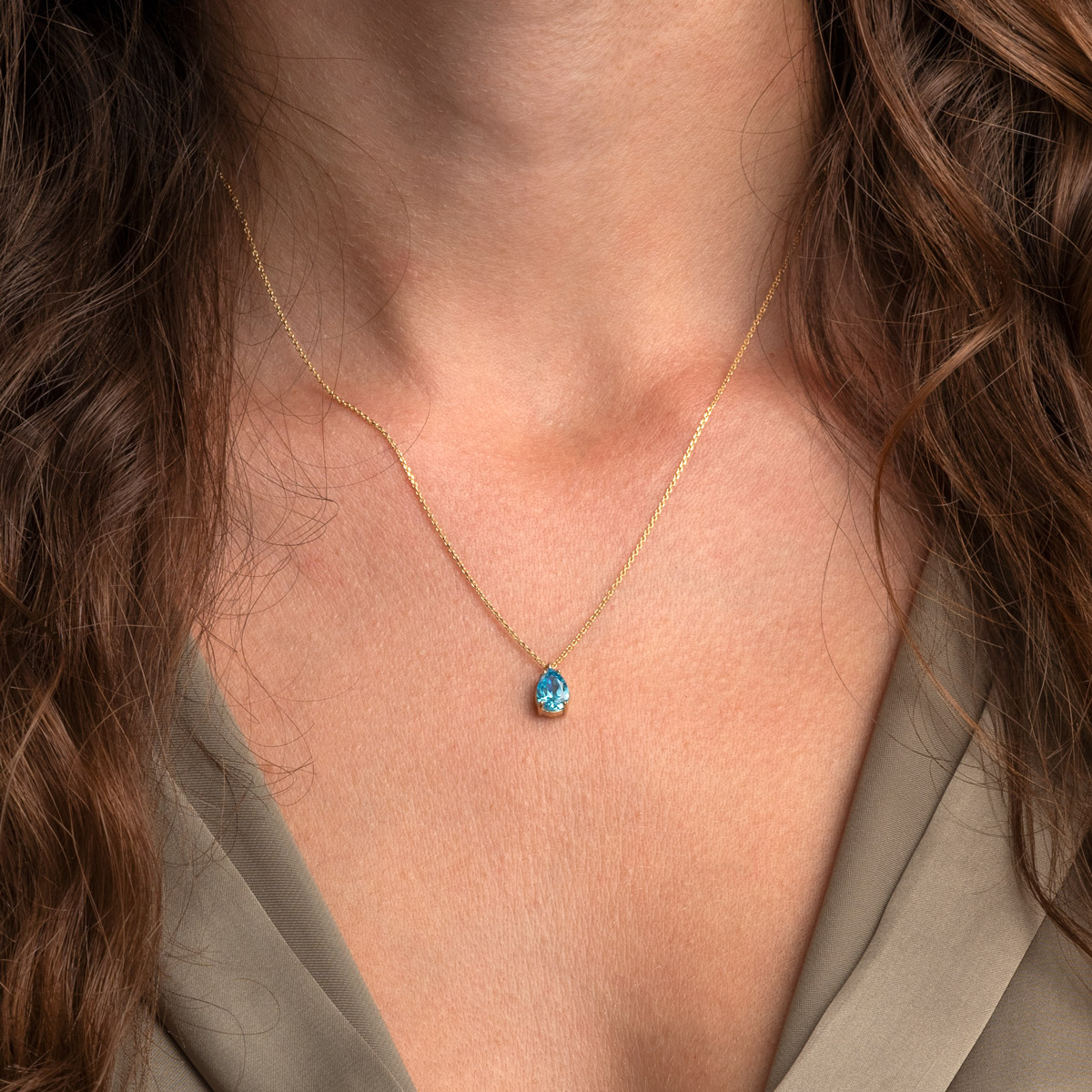 Σταγόνα Γαλάζια Πέτρα Κολιέ από Χρυσό 9Κ