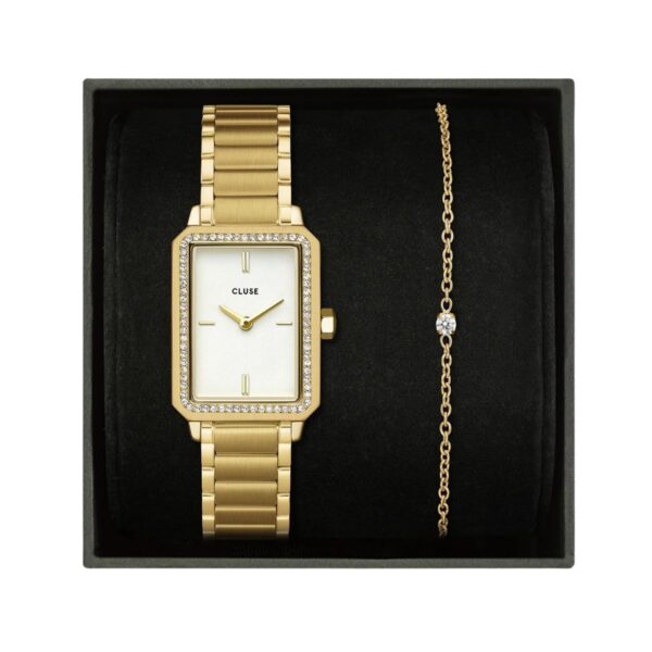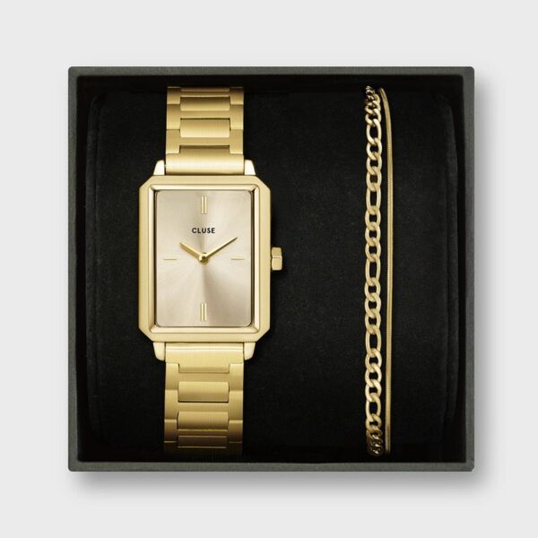 Cluse Gift Box La Tétragone Full Gold Steel Watch and Curb Chain Bracelet