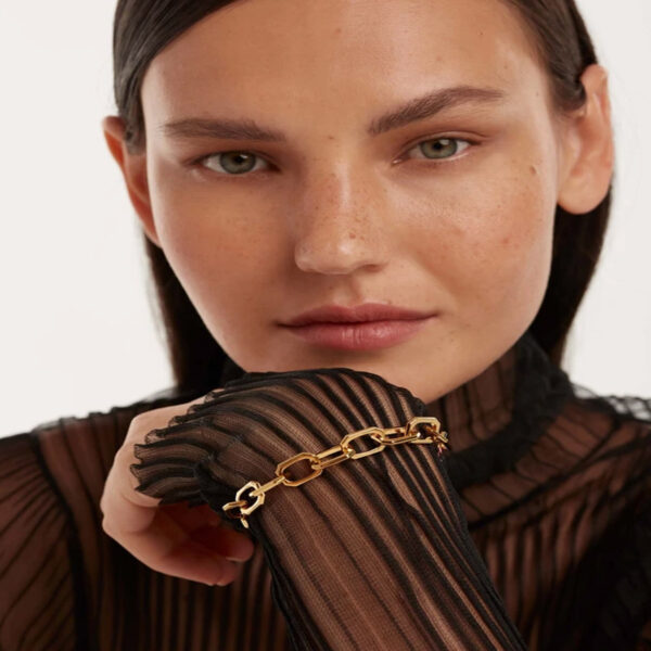 An architectural poem Strong lines, clean volumetry, structural presence. The new signature chain is the unexpected match between grace and industriality, a fresh and genuine design statement that frames our era. The unique design of the chain’s links commands an aesthetic of contrasts. The conceptualization of these pieces was based on finding a contrast between hard lines and soft figures, creating a singular and architectural piece inspired by a mix of the 2000’s and the industrial revolution.
