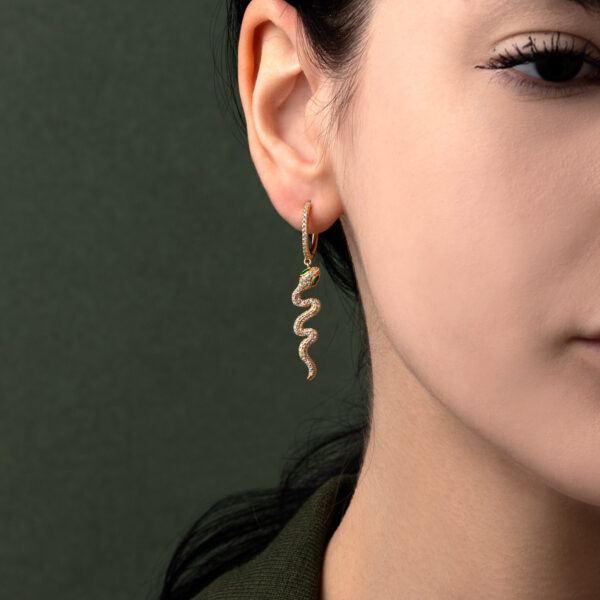 Green Eyed Snake Earrings – 925 Sterling Silver