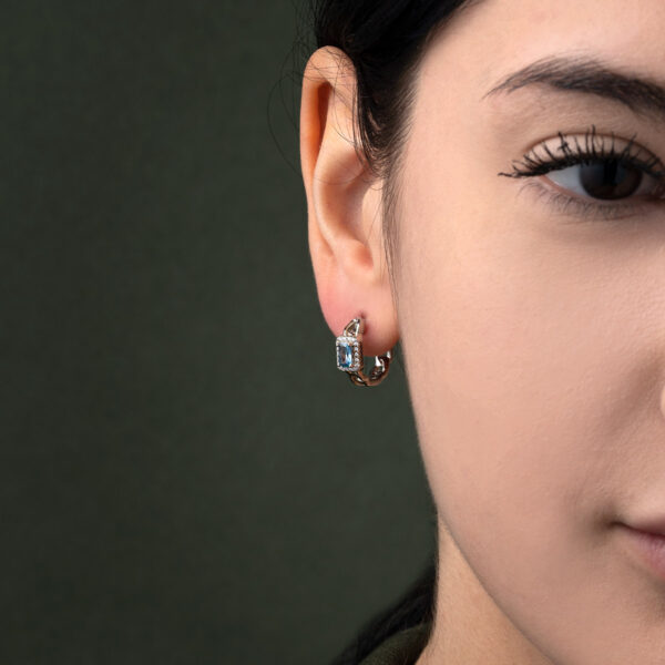 Blue Zircon Hoop Earrings – 925 Sterling Silver