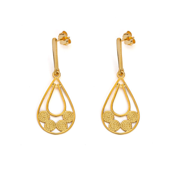 89,00€A REINVENTION OF THE BASICS The Essentials embody refined effortlessness. Timeless staple hoops, studs or chain earrings with smooth lines that are perfect for everyday wear but can also work on special occasions by stacking them. The Sugar earrings are 18K gold plated made in Sterling Silver with a drop shape.