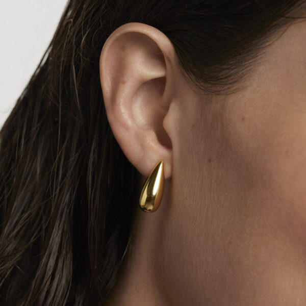 99,00€A REINVENTION OF THE BASICS The Essentials embody refined effortlessness. Timeless staple hoops, studs or chain earrings with smooth lines that are perfect for everyday wear but can also work on special occasions by stacking them. The Large Sugar stud earrings are 18K gold plated made in Sterling Silver with a statement drop shape.