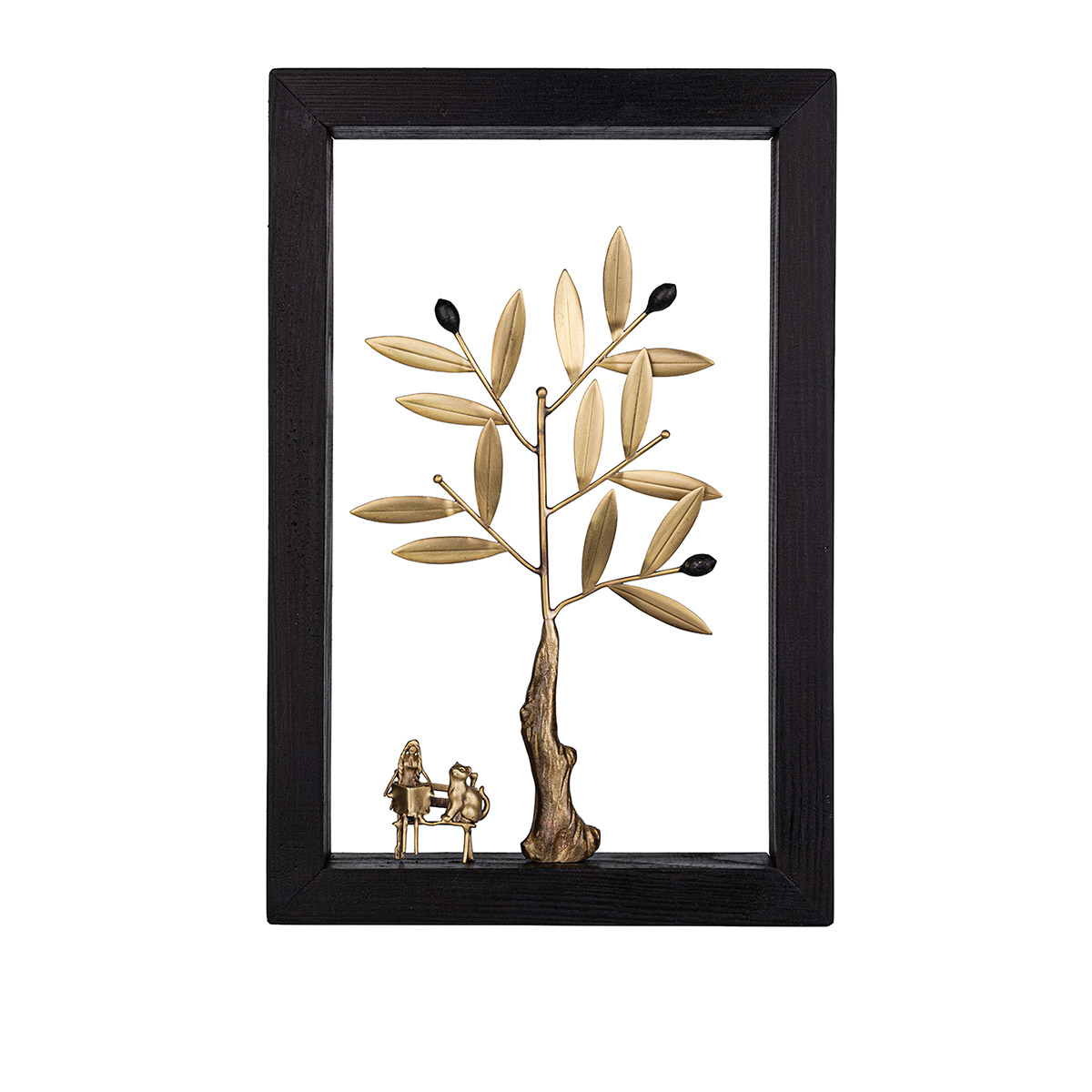 Bronze Figure Beneath the Tree of Quiet Dreams in Wood Art Frame
