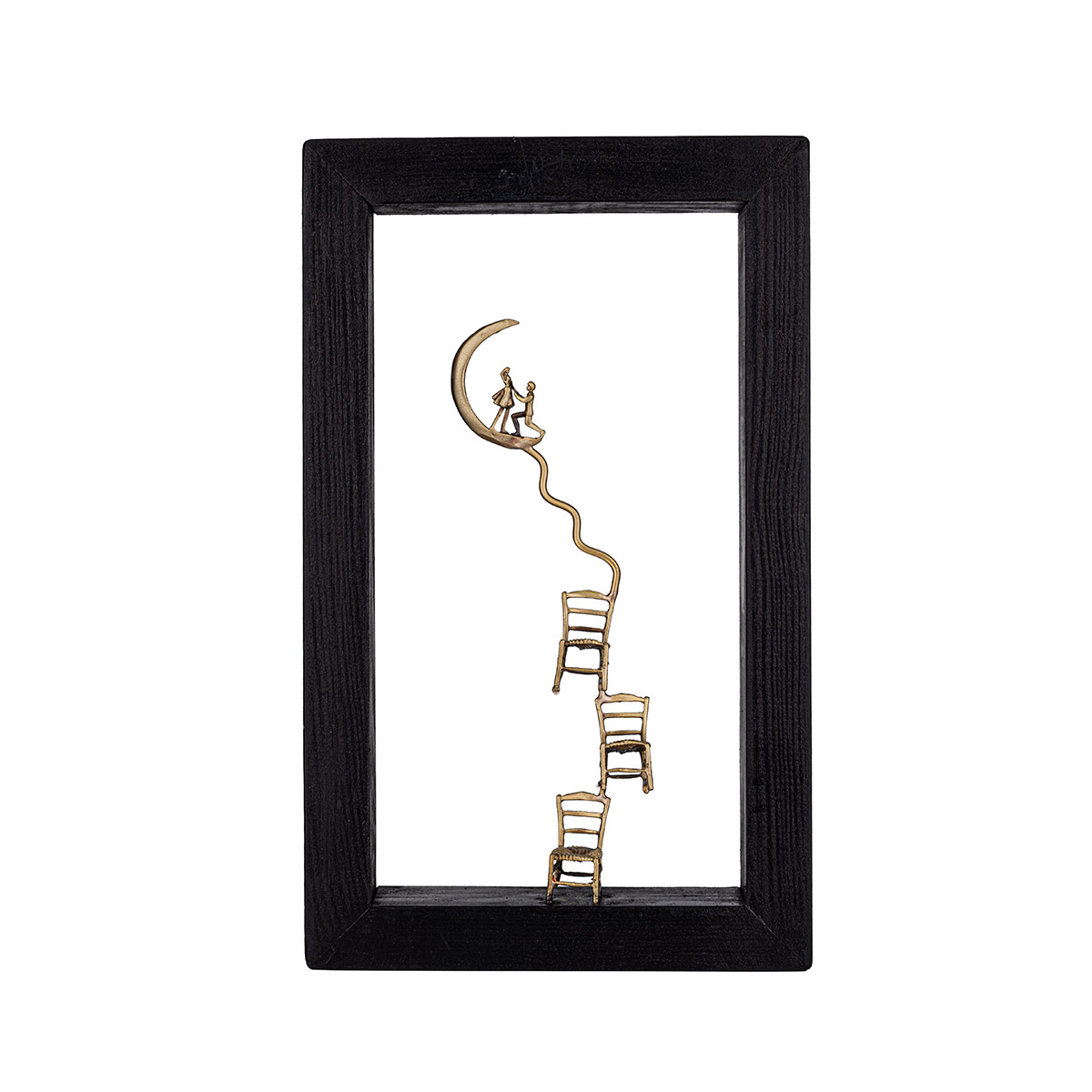 Bronze Figure Moonlit Family Dreams in Wood Art Frame 115,00