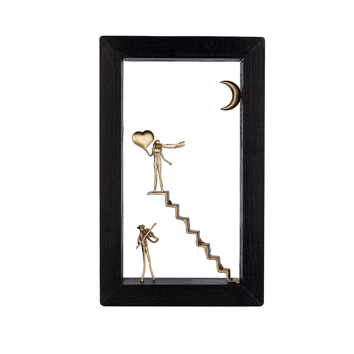 Bronze Figure Melodies of Love on the Moon Staircase in Wood Art Frame