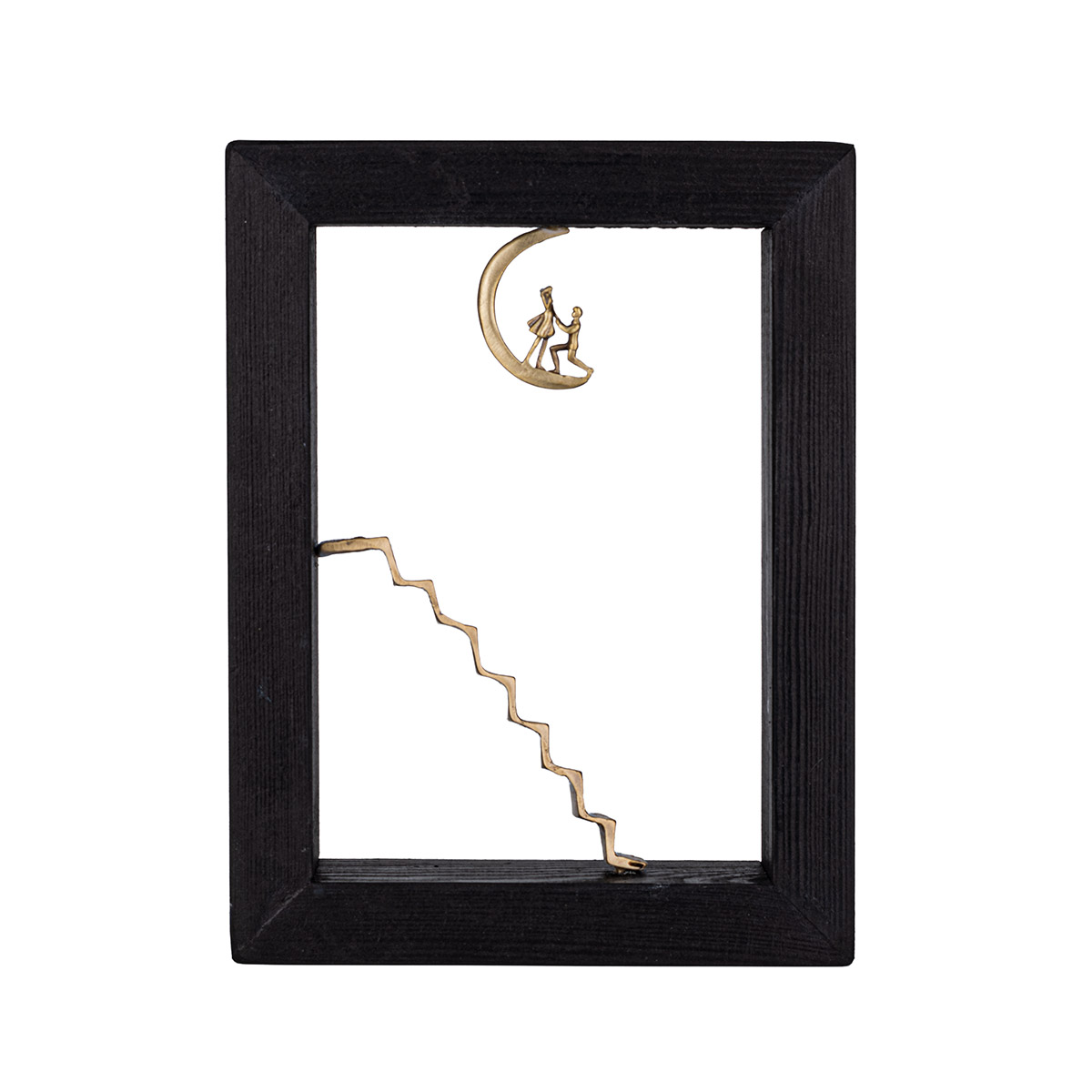 Bronze Figure Stairway to the Moon in Wood Art Frame