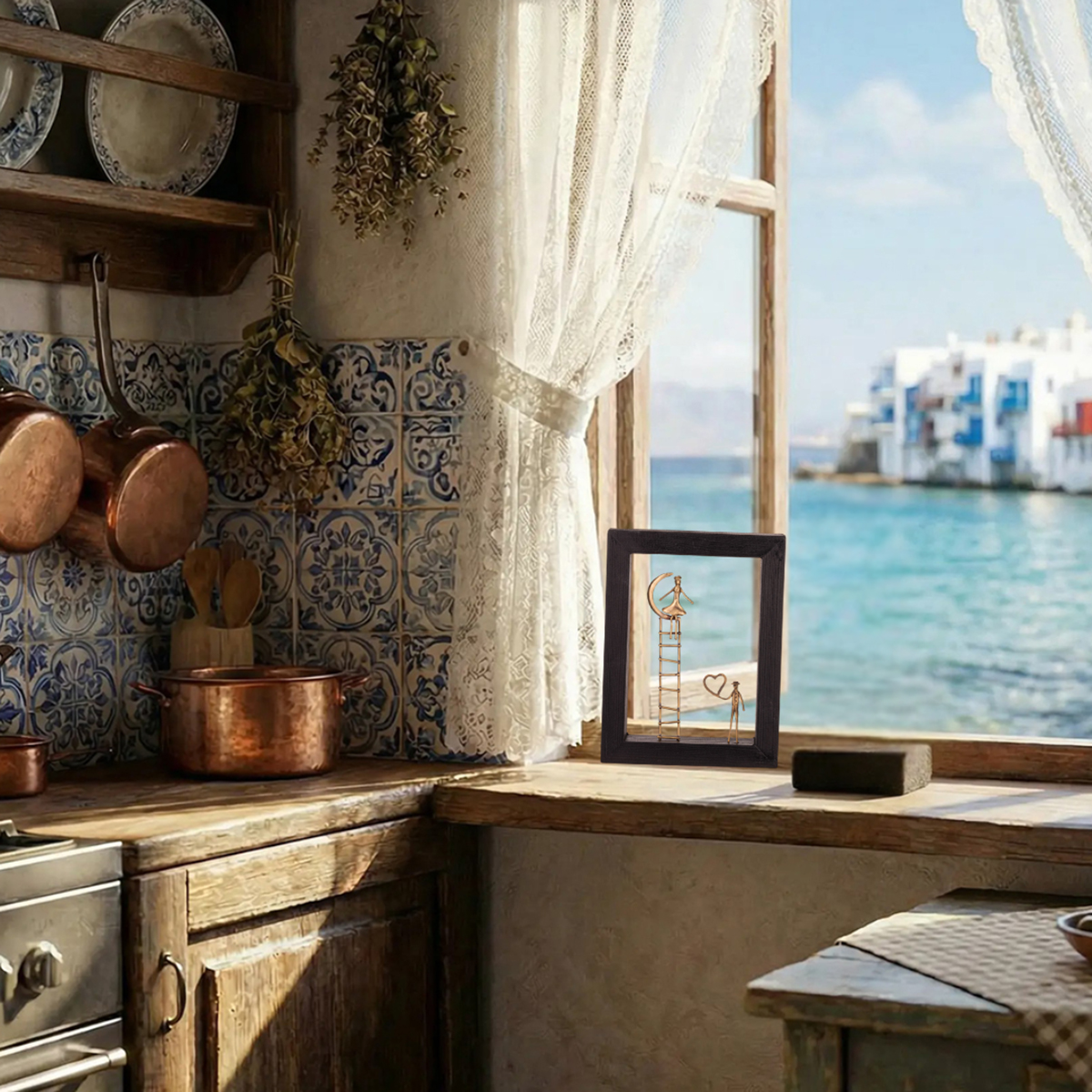 Bronze Couple over a heart - Wood art frame 94,00
