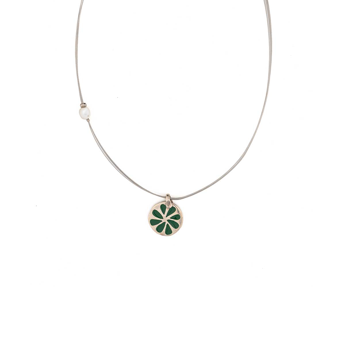 Flower Pearl Choker Necklace in 925 Sterling Silver with Steel Cord