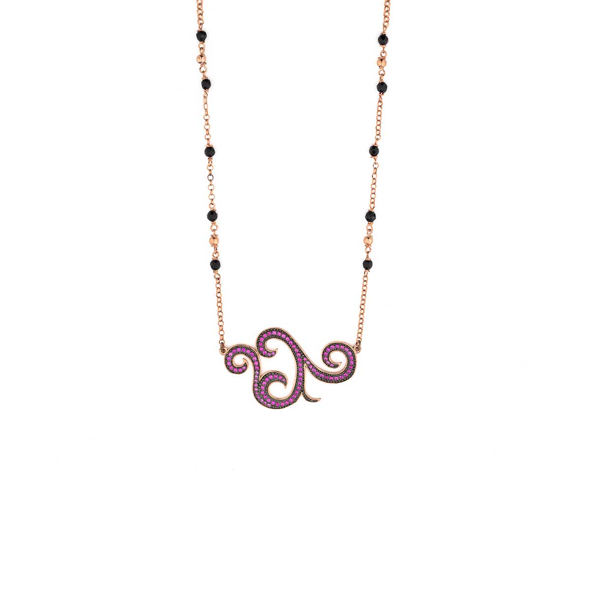 Black Beads Necklace in 925 Sterling Silver Rose Gold Plated