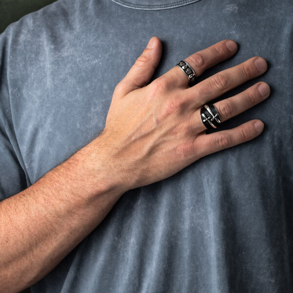 Sterling Silver Cross and Fleurs-de-lis Ring