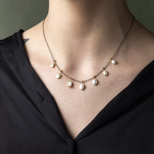 925 Sterling Silver and Gold Plated Necklace with Pearls