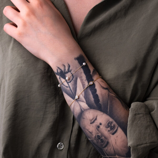 29,00€With a small circle pendant and miniature drop circles, this elegant gold bracelet is sure to grab attention. Shines bright on its own or as a stacking extra.