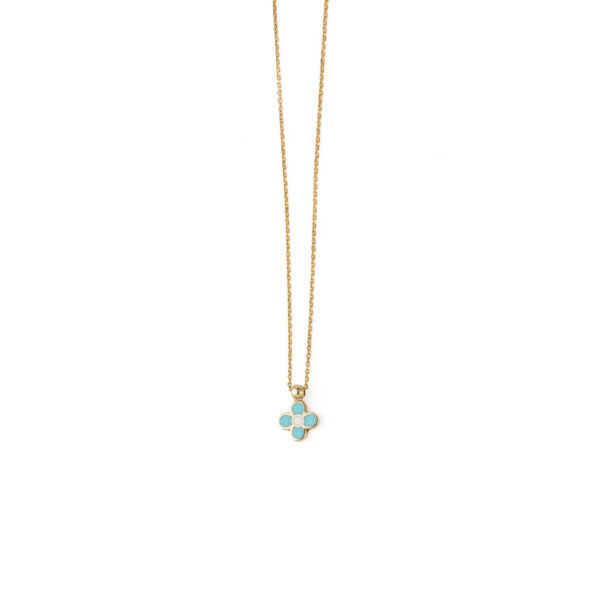 A delicate clover necklace with turquoise enamel, for an effortless chic style.