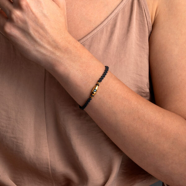 Square Eye Black Macrame Bracelet – 925 Sterling Silver and Gold Plated