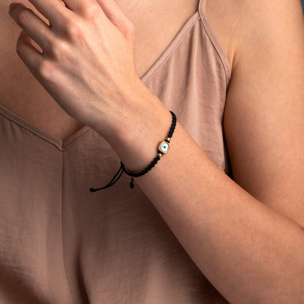 Evil Eye Black Macrame Bracelet – 925 Sterling Silver