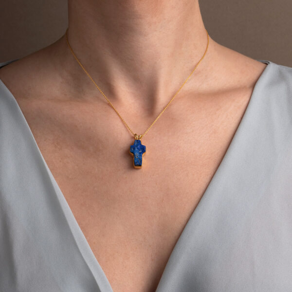 Lapis Cross Necklace – 925 Sterling Silver and Gold Plated