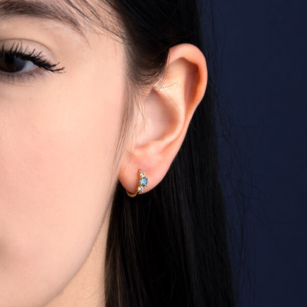 Hoop Earrings with Light Blue Stone – Sterling Silver and Gold Plated