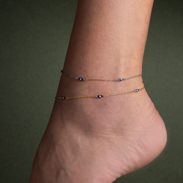 Evil Eye Anklet Bracelet – Sterling Silver and Gold Plated