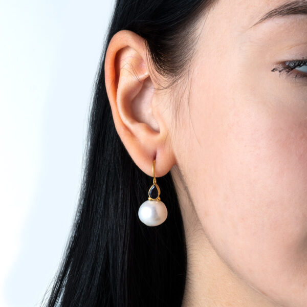 Iolite and Pearl Earrings – Sterling Silver and Gold Plated
