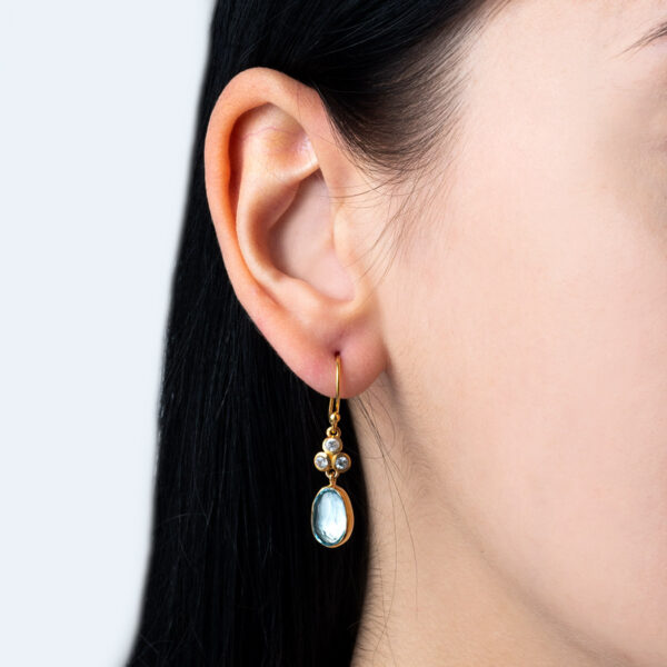Aquamarine n Zircon Dangle Earrings – Sterling Silver and Gold Plated