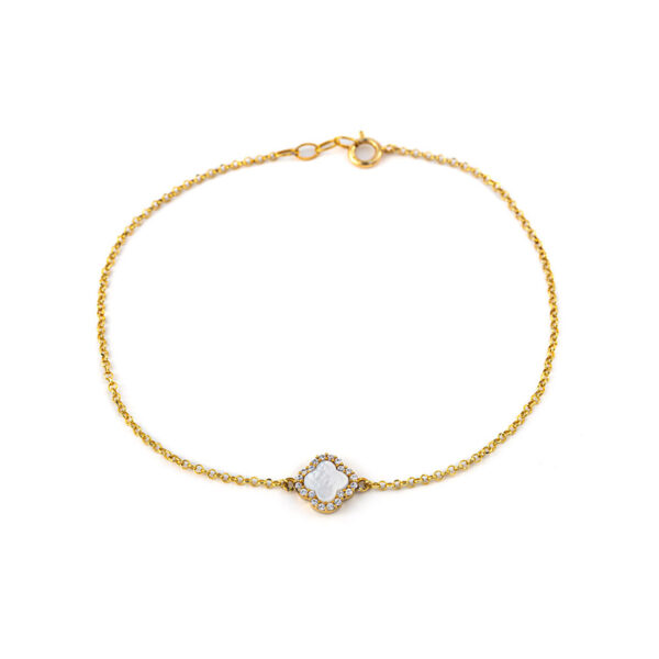 Sterling Silver Gold Plated Clover Bracelet with Zircon