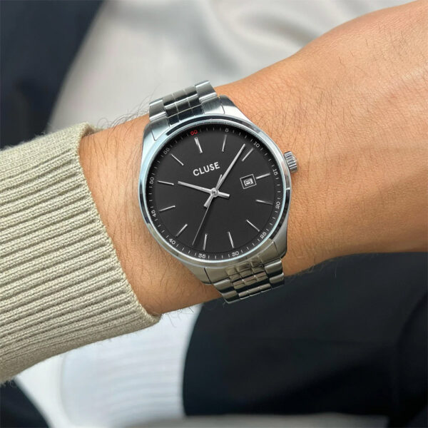 Discover our new men’s watch collection – the epitome of style, quality and value. With sleek designs and durable construction, these pieces combine sophistication and modernity. With a 41 mm brushed and polished silver stainless steel case and black dial the ANTHÉOR takes center stage on your wrist. Its 20 mm wide silver stainless steel strap complements the case, creating a harmonious and sleek design that effortlessly blends with any outfit. To adjust the strap and change the battery, we recommend visiting your local jeweler.