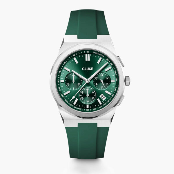 Cluse Vigoureux Chrono Watch Silicone Green Silver Colour