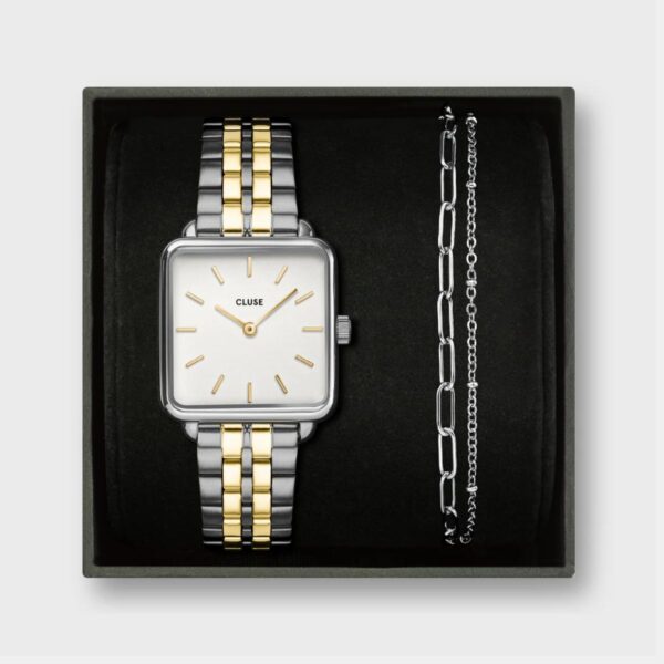 Cluse Gift Box La Tétragone Steel Watch Bicolour n Double Chain Bracelet
