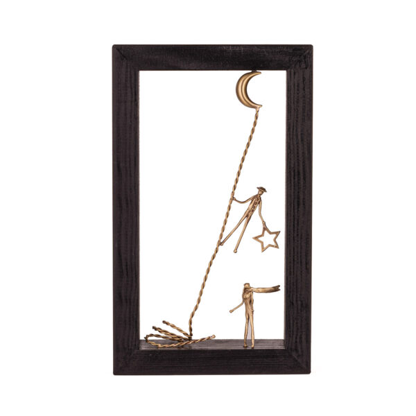 Bronze figures on the wooden frame. Handmade item. Discover Art work Collection